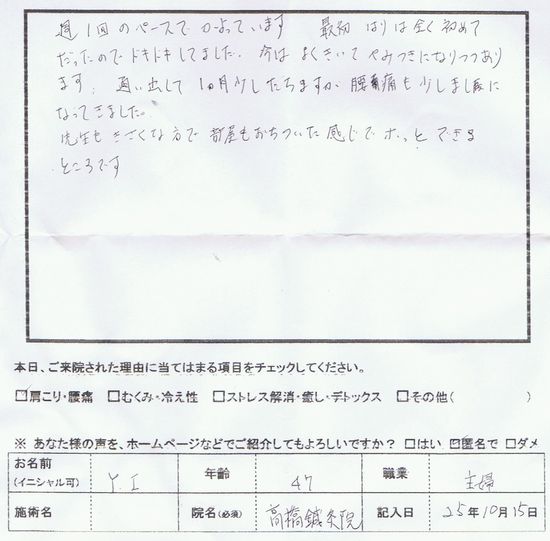 ( Y.Iさん 47歳 主婦 腰痛(坐骨神経痛) )