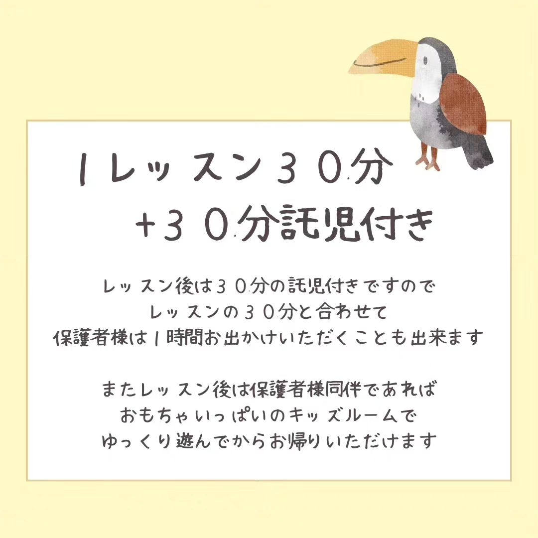 ◎30分レッスン、30分の託児付き。