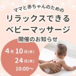 高橋鍼灸院のキッズルームにて、「赤ちゃんとママのためのリラックスできるベビーマッサージ」を開催します!