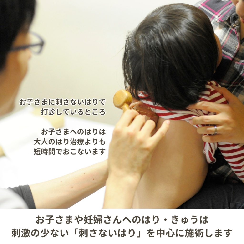お子さまや妊婦さんへのはりは、刺激の少ない「刺さないはり」を中心に使います。