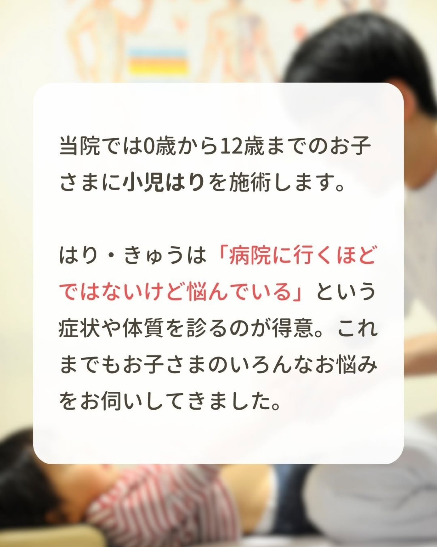 当院では0歳から12歳までのお子さまに、小児はりを施術しています。