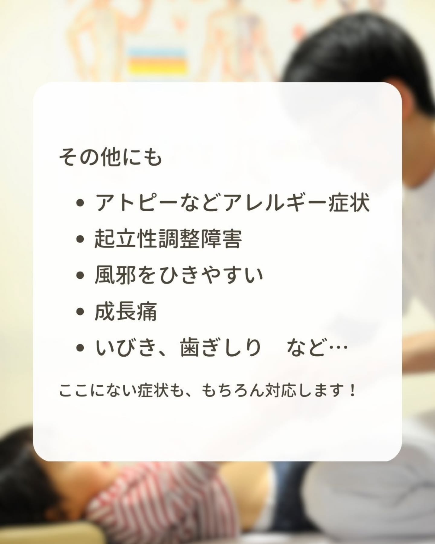 その他アトピーなどアレルギー症状、起立性調節障害、風邪を引きやすい、成長痛、いびき など…