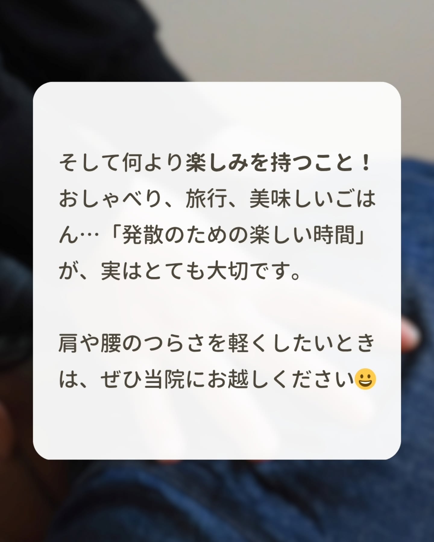 おしゃべり、旅行、美味しいごはん…「発散のための楽しい時間」が、実はとても大切です。