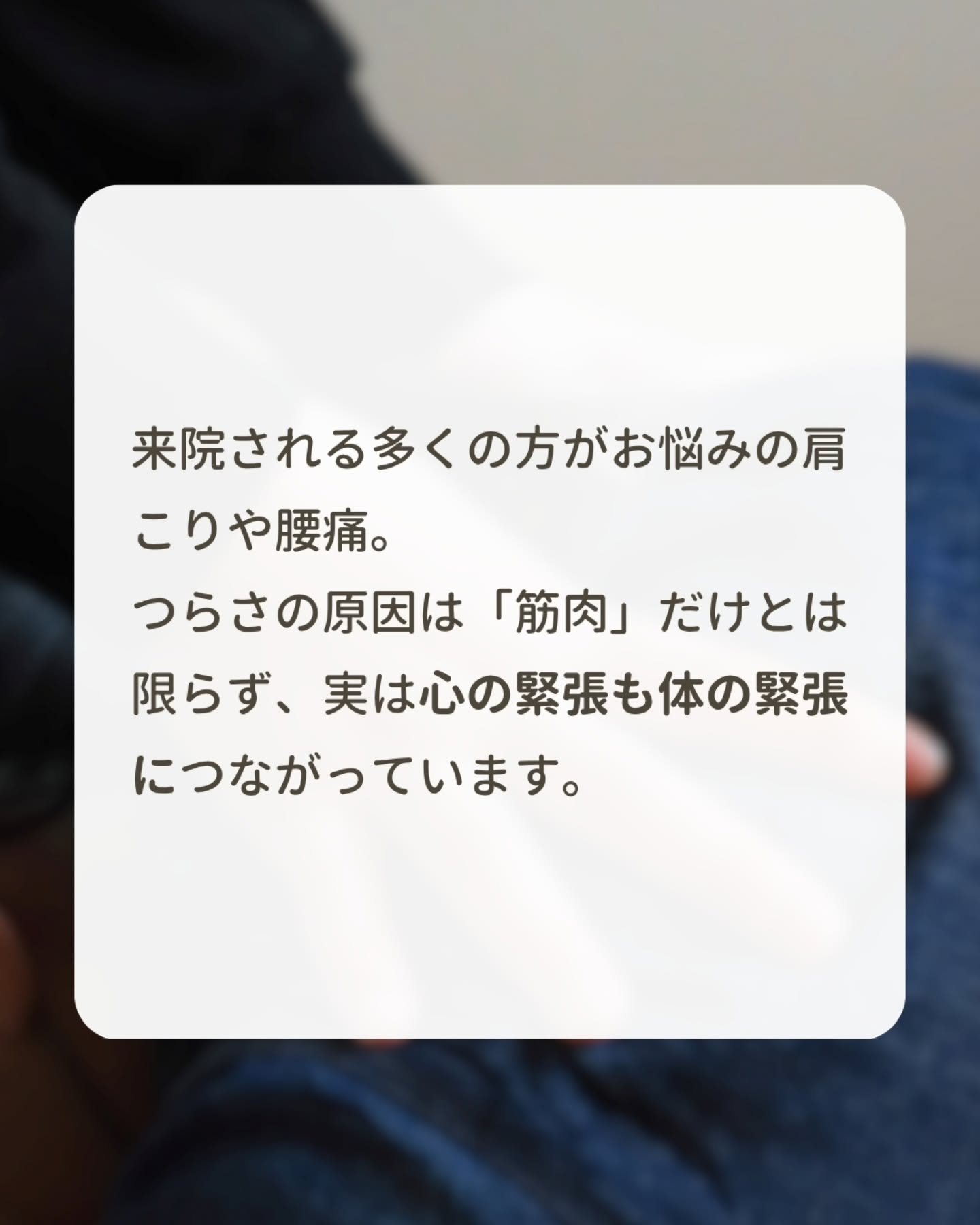 【肩こり・腰痛には『体と心』の両方からアプローチ】