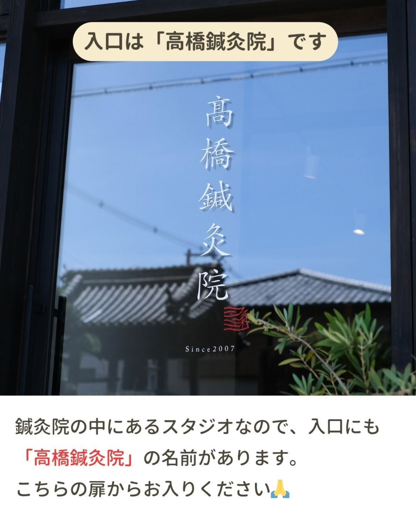 鍼灸院の中にあるスタジオですので、「高橋鍼灸院」の扉からお入りください。