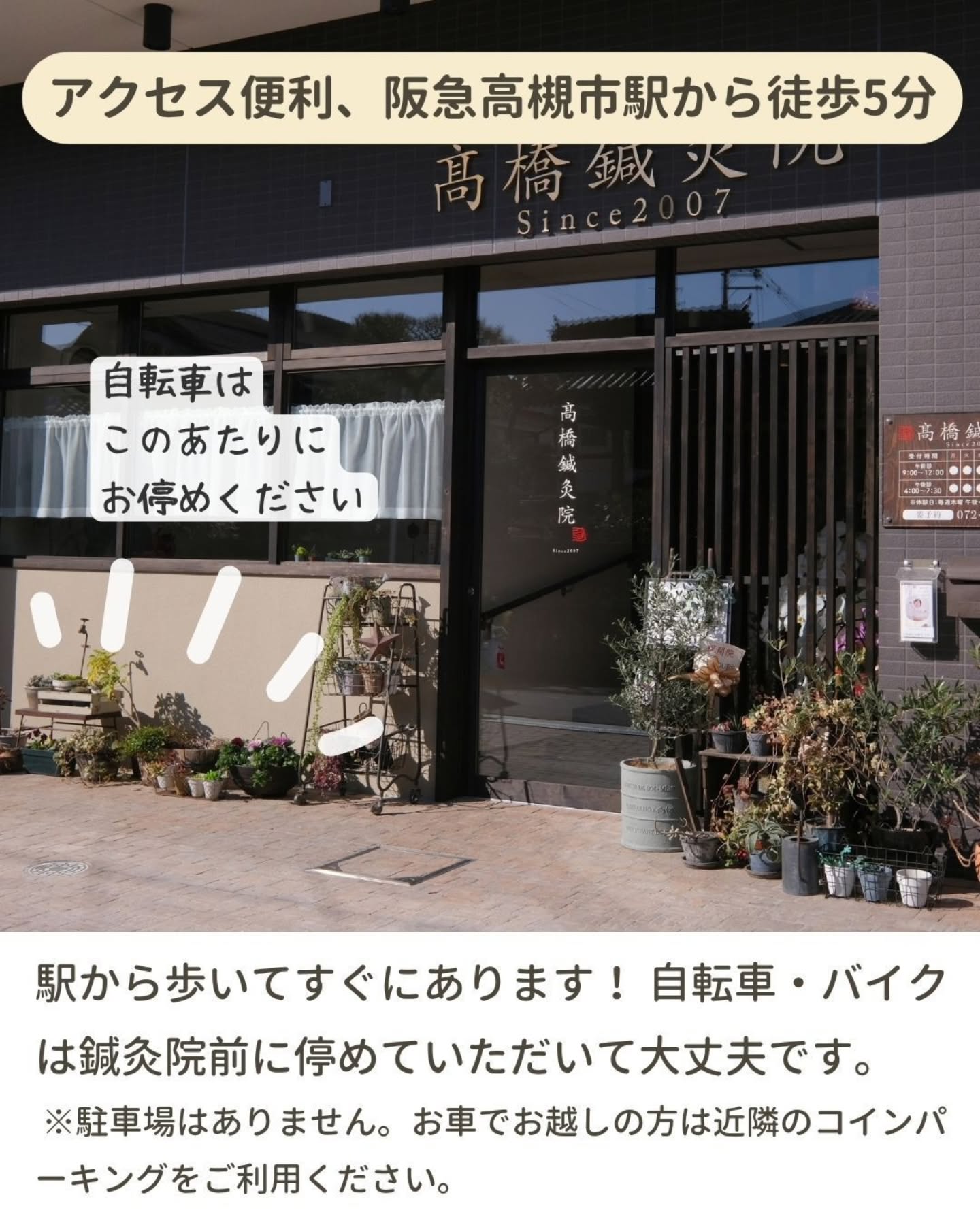 駅チカで通いやすい場所にあります!自転車・バイクは鍼灸院前にお停めください。