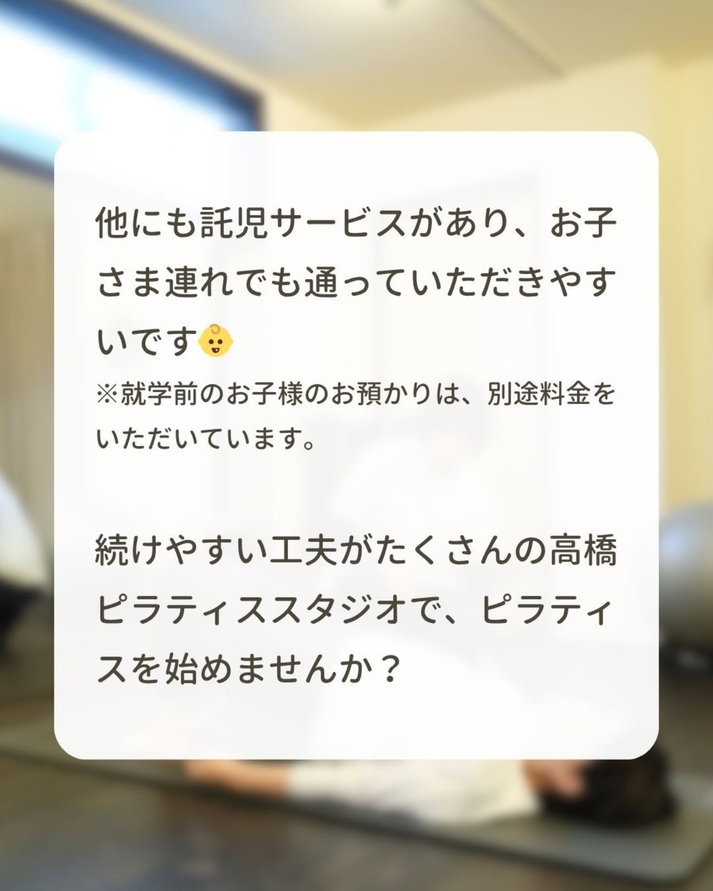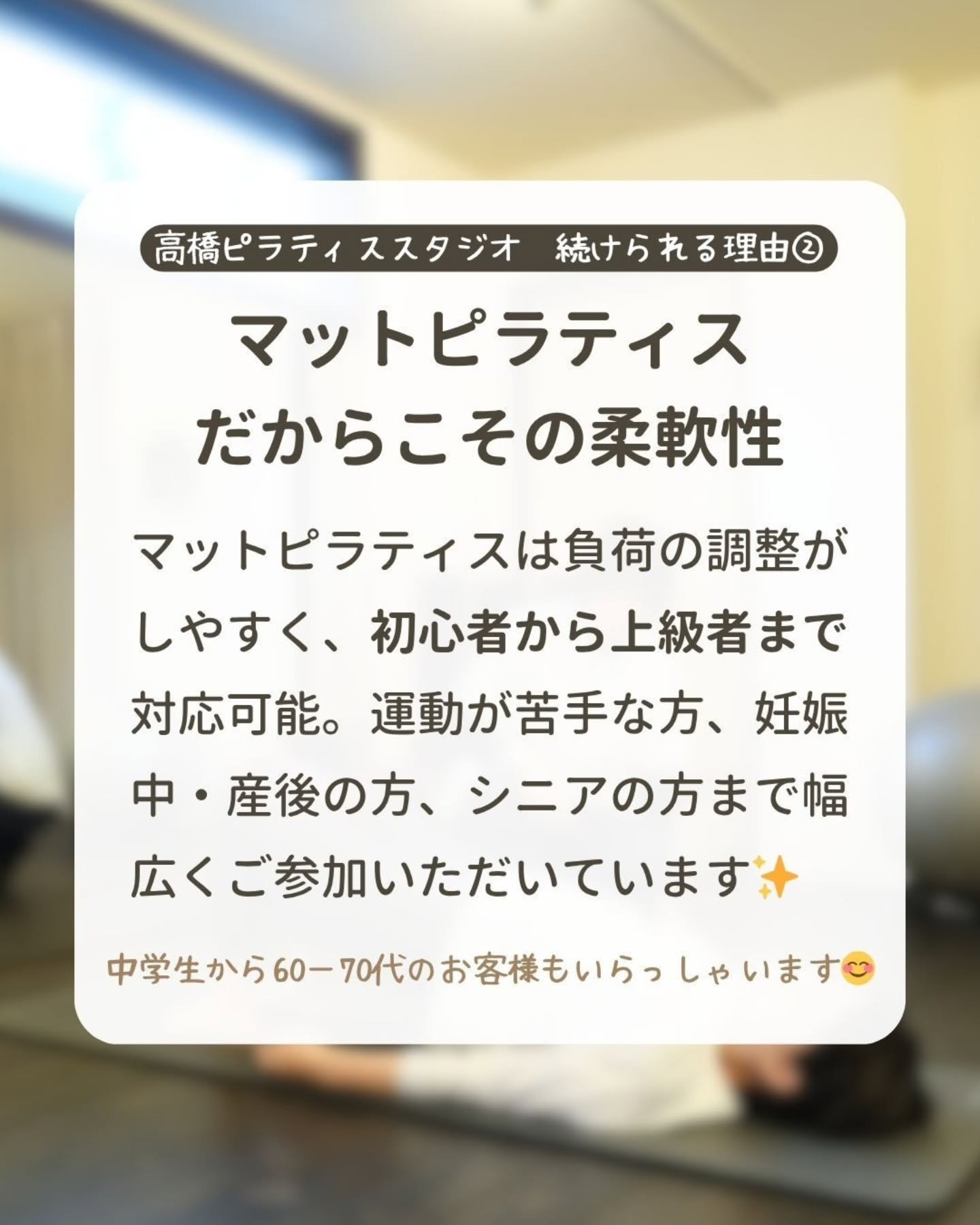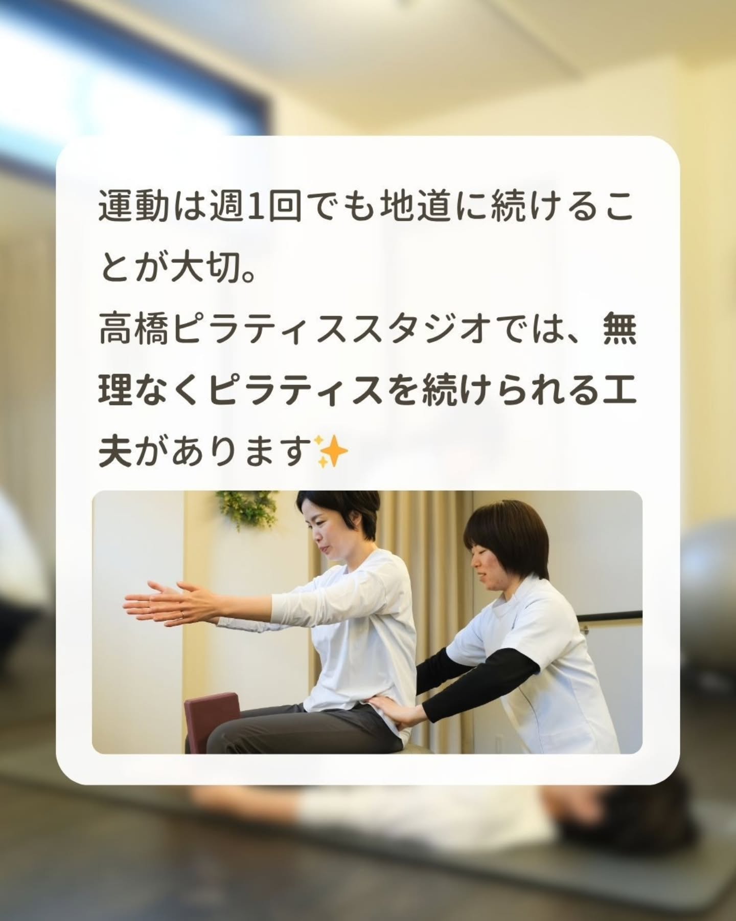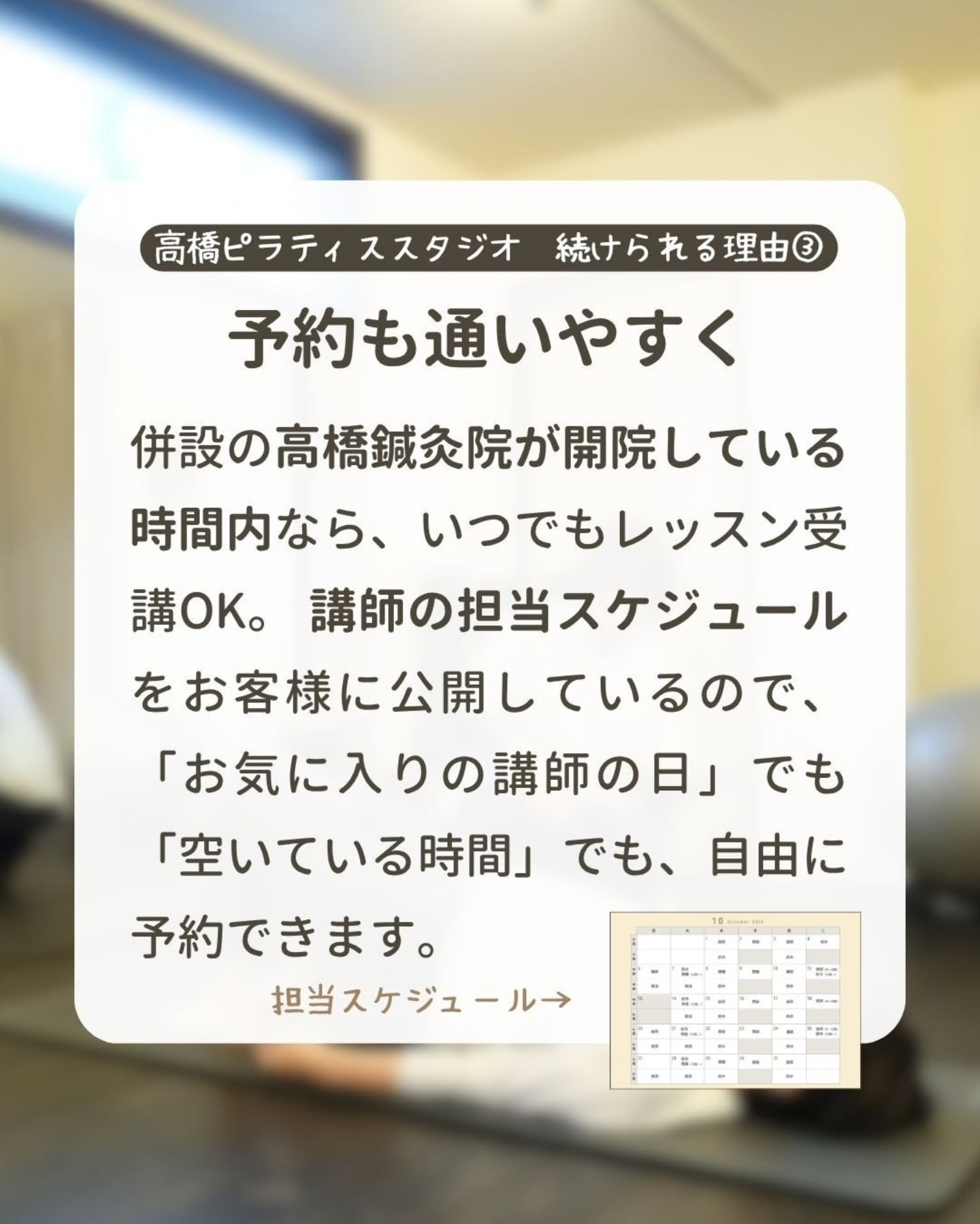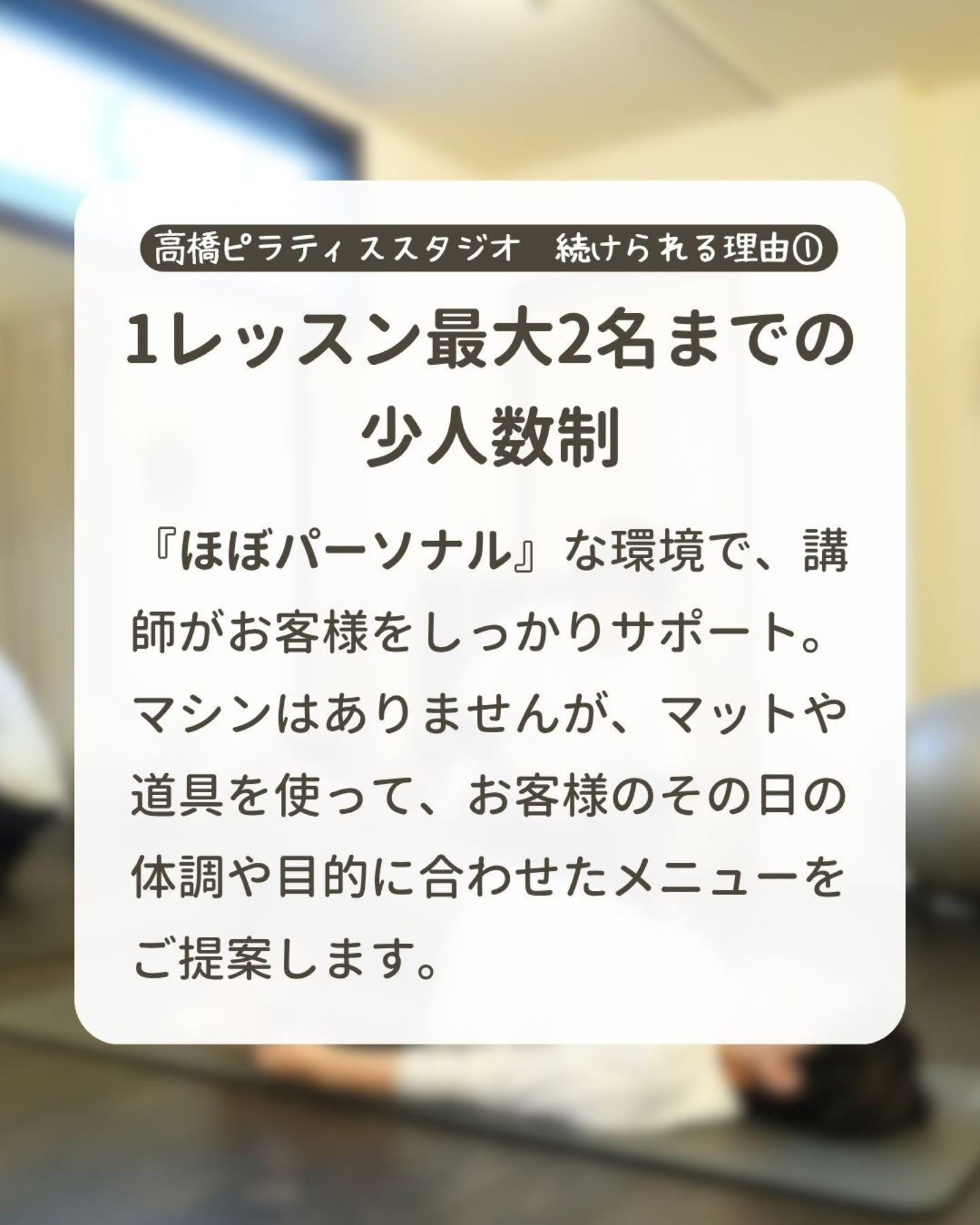 高橋ピラティススタジオは、無理なくピラティスを続けられる工夫があります!