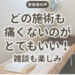 どの施術も痛くないのがとてもいいです!(ゴキゴキ動かすタイプの整骨院とは怖いし痛いしで私は合わなかったので…)