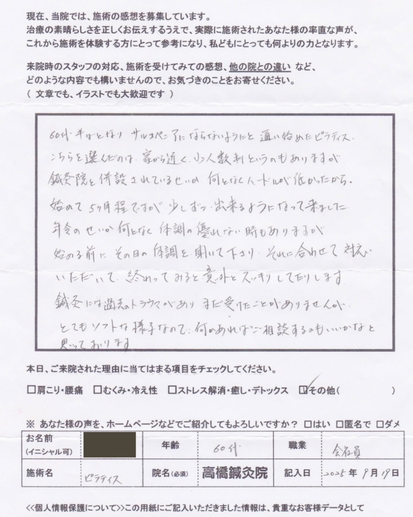 鍼灸には過去のトラウマがありまだ受けたことがありませんが、とてもソフトな様子なので、何かあればご相談するのもいいかなと思っております」