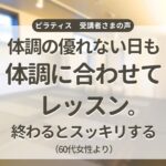 その日の体調に合わせて無理なく動くことで、レッスン後のスッキリ感につながっていると思います。これからも安心して通っていただけるよう、スタッフ一同サポートいたします。