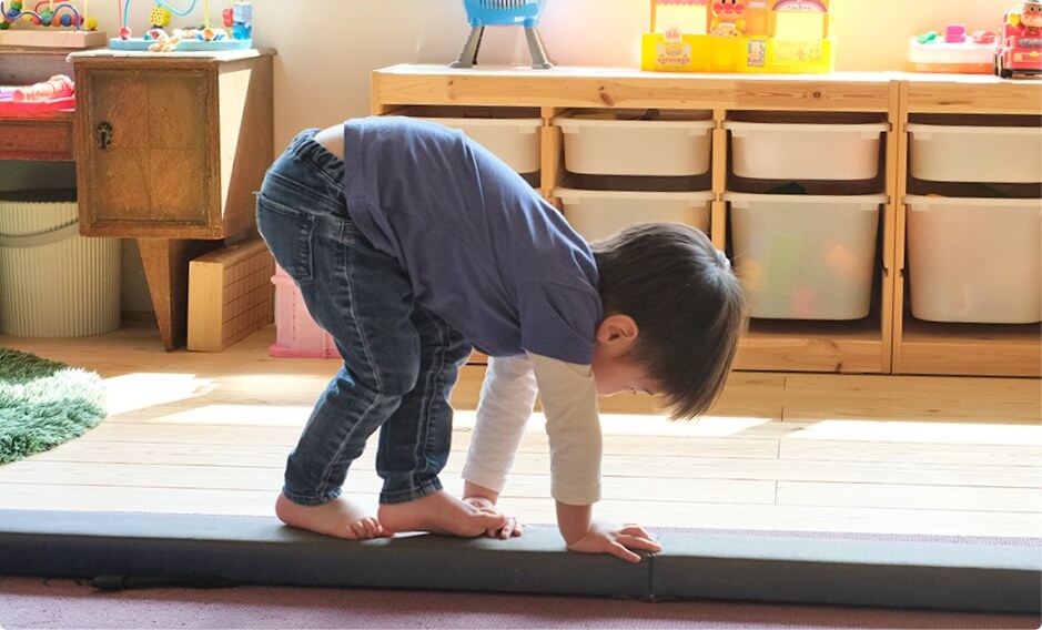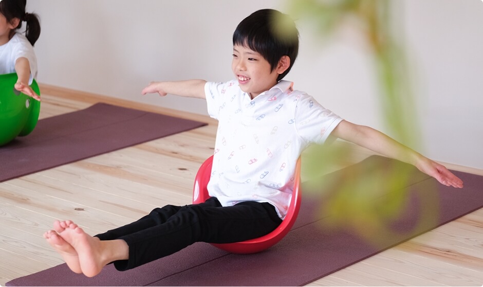 バランスボールやバランス玩具を取り入れたり、お子さまと講師でサーキットのコースを組んだり、遊ぶように楽しくレッスンします。